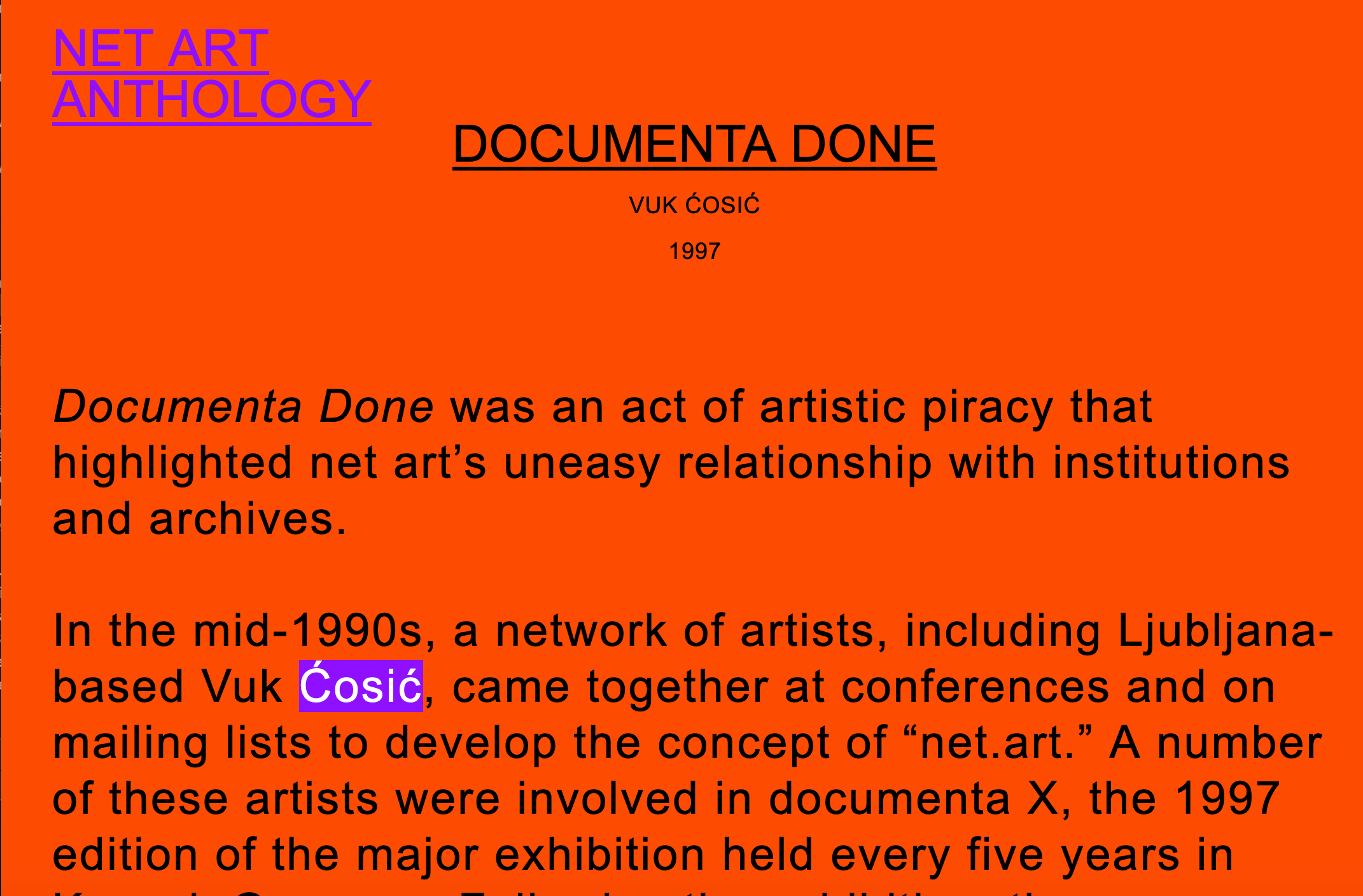 • Vuk Ćosić, Documenta done